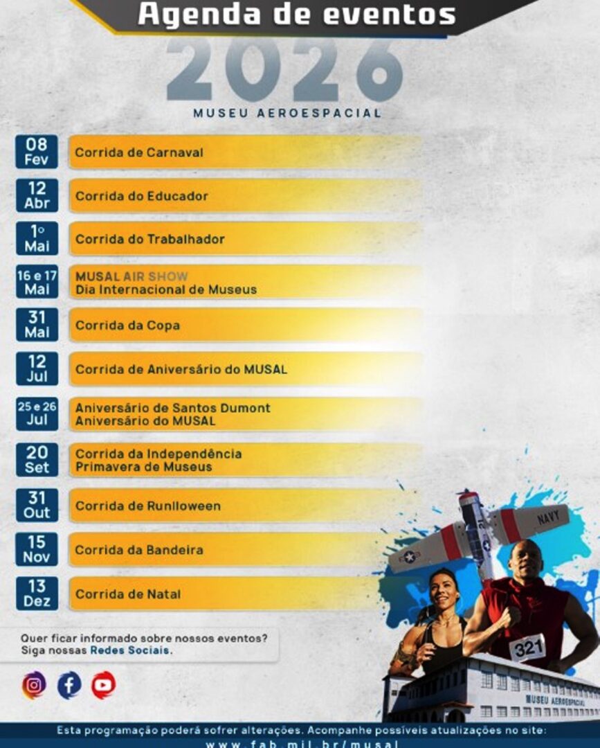 Agenda 2026 do MUSAL: eventos gratuitos de aviação e corridas pagas já têm datas