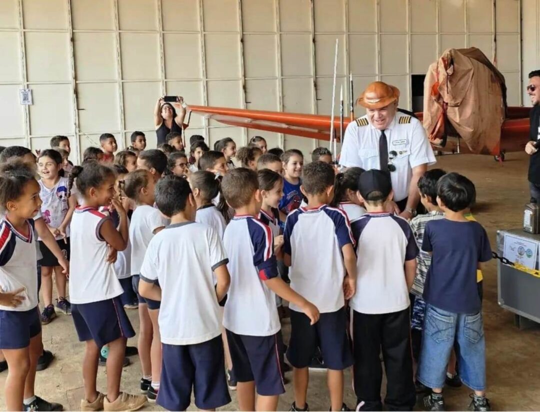 As ações, que são mensais, incluíram visitas às instalações aeronáuticas, contato direto com aeronaves e palestras sobre história da aviação, segurança operacional e ciências relacionadas ao voo. Além disso, os estudantes interagiram com pilotos, mecânicos e outros profissionais do setor. O encontro ficou ainda mais animado com a presença do Comandante “Jabá” (Lúcio Flávio – @aerofanaticosbrasil). Ele brincou com as crianças, contou histórias e trouxe leveza ao ambiente. No encerramento, cada aluno recebeu brindes como recordação da experiência.