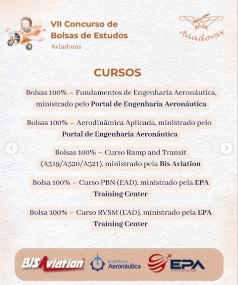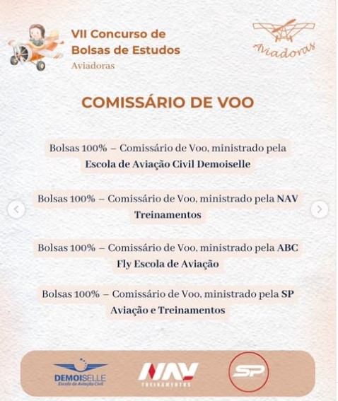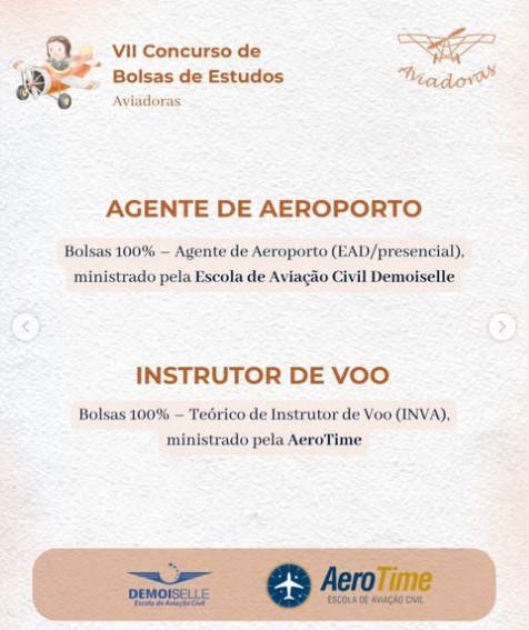O VII Concurso de Bolsas de Estudos Aviadoras representa uma iniciativa consolidada da organização, que atua de forma permanente na capacitação das mulheres no setor aéreo. Para participar, a candidata deve ser associada adimplente e seguir todas as orientações descritas no edital disponível no site da instituição. Além disso, novas associadas podem se filiar até 30 de novembro. Assim, elas garantem a possibilidade de concorrer às bolsas desta edição. Todas as bolsas serão entregues durante o IX Encontro Mulheres na Aviação, marcado para os dias 7 e 8 de março de 2026.