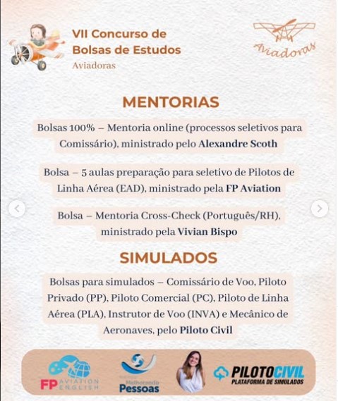 Detalhamento das bolsas do VII Concurso de Bolsas de Estudos Aviadoras